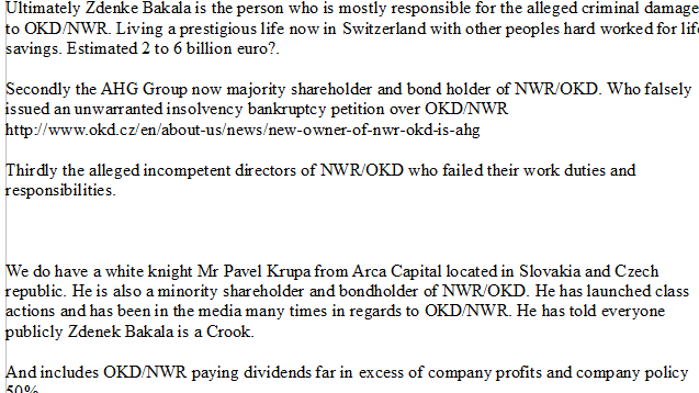 To all minority shareholders/human beings of New World resources and OKD.