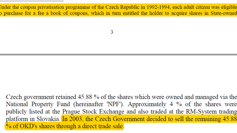 http://www.ceskatelevize.cz:8080/ivysilani/10095426857-interview-ct24/218411058040503/titulky ** Interview-ct24- 3rd May 2018 18:28 CT24Lukáš Černohorský / Pirates /, chairman of the OKD Investigation Commissiom. 25M28s TV news. http://iuhli.cz/byty-okd-najemnikum-levneji-neprodame/ **Must read **2nd May 2018. “OKD flats will not be cheaper to tenants”. And I believe if you the tenants of former OKD apartments try hard enough you will win!. Thank you for allowing the comments iuhli.cz!. http://iuhli.cz/jaky-rok-prozila-okd/ **Must read*** 2nd May 2018. OKD has claimed profit's. But they claimed more cash on the books 6 month’s earlier?. Read Aussie comments. Thank you for allowing the comments iuhli.cz!. URGENT ATTENTION OKD, Residomo tenants see below for help and latest update in regards to past Privatisation contract. OKD PRIVATISATION was decided in 2003 https://postimg.cc/image/nnvbdyhjf/ . How very unlucky was the Czech Republic to sell based on a report from the 10th March 2004 by Komerční banka when thermal coal was priced at only $US26.75 a tonne. https://www.smh.com.au/articles/2004/03/10/1078594430575.html * 11th March 2004. Australian news report confirms Xstrata the world biggest exporter and global price setter of thermal coal. Settled thermal coal starting 1st April 2004 until 1st of April 2005 up 68% for 2004-2005 (2005FY) contracts with some Japanese power utilities at $US45 a tonne!. 2. https://www.investegate.co.uk/articlePrint.aspx?id=200404220700158734X *22nd April 2004. Xstrata Coal has secured a contract year price of US$45/tonne FOB, with effect from 1 April 2004. This represents a 68% price increase on last year's unofficial reference price of US$26.75/tonne. 3. https://postimg.cc/image/yyxz28w3f/ Wesfarmers Australia Thermal coal prices 1992 until 2006 April full year contracts. 4. https://postimg.cc/image/icgetddi3/ .Thermal coal pricing chart later and information about OKD/NWR 9th April 2003 until 2018 April 9th. Note: Bakala owns this news paper and article. Use your favourite search engine to find: (thermal coal contract FY 2005) ( coking coal contract FY 2005) 1. https://www.google.com.au/search?rlz=1C1GIGM_enAU712AU712&biw=1920&bih=949&q=thermal+coal+contract+FY+2005&spell=1&sa=X&ved=0ahUKEwi4sc7EisnaAhVFj5QKHZJ0ARwQBQgkKAA *Thermal power station coal. 2. https://www.google.com.au/search?rlz=1C1GIGM_enAU712AU712&biw=1920&bih=949&ei=svvZWr_DHcPo0ASh0oKYAw&q=coking+coal+contract+FY+2005&oq=coking+coal+contract+FY+2005&gs_l=psy-ab.3...91901.93903.0.94317.11.9.0.0.0.0.293.1021.2-4.4.0....0...1.1.64.psy-ab..8.0.0....0.12TPgGfQ-A8 * Coking coal for making steel. 3. http://www.easypolls.net/poll.html?p=5a949d5be4b04e95a4b00434 VOTE NOW!. ************************************************************** URGENT ATTENTION OKD, Residomo TENANTS. In regards to the Czech Republic's PRIVATISATION contract that was allegedly written by politicians, barristers and lawyers in 2003/04. I am writing about the former OKD 44,000, now “Residomo” apartments and land parcels sold pre 2008 NWR IPO. So never part of NWR. In the Czech Republic, I am making therefore making a logical assumption that what is written in Czech law has priority over English. But English is the business language of Europe and most of the world. So in regards to myself, I am self taught, but I really do hate all lawyers nothing personal. Please if possible give me the Czech version and translate the clause into English. Google may get it wrong. This clause is most important: (26) iv) the pre-emption right, unlimited in time, granted to the original tenants enabling each tenant to purchase the apartment he lives in at the fixed preferential price of CZK 40 000, provided that the owner would put the apartment up for sale. **Česky prosím stáhnout a uložit na plochu. Zkopírujte a vložte do překladače Google***. Tady: https://translate.google.com.au/?hl=en&tab=TT Please remember I can not offer you advice. Because I'm not qualified. But I am giving you my opinion. And a secret about myself I can tell you that I have personally in the past allegedly bested more than one lawyer and a regulator in Australia!. So who do you believe and please remember my way will not cost you any money at all. First of all, I believe you may have past petition's in regards to the former OKD apartments. If you don't have a petition then you must start an online petition now for the apartment tenants and and anyone else who is willing to sign. Then have a chosen leader send that petition to the Czech Ombudsman. And also the same petition to the Czech Constitutional Court ( See and send to Pavol Krupa, My apologies I have not asked Pavol Krupa but I am sure he will try to help you all)). The Czech Constitutional Court would be the place that can enforce the highest laws in the country and they will also look after your the Czech peoples rights. Also I recommend that you also include and use the same petition and send it to the European Ombudsman and the European Commission. And also the European Constitutional Courts which is at the moment the Czech Constitutional Court!!!. The contract is legally binding in my opinion. In regards to all lawyers, never ever believe any spoken words from a lawyer in my own opinion. Same goes for barristers and politicians. Alleged double dealing ,blarney, sorry I must stop that one really did get away from me!. I wish all the former and current apartment owners of the former OKD, now Residomo. The best of luck on behalf of all our petition signers and we all hope you the tenants all get your apartments for the legally pledged 40,000CZK each. ********************^^^^^^^^^^^^^^^^^^**************** NOW RETURNING TO THE 2 YEARS 6 MONTHS COURT CASE INTO OKD PRIVATISATION! http://www.radio.cz/en/section/curraffrs/czech-prime-ministers-reputation-on-line-in-privatisation-court-case 9th October 2015 Czech court will start proceedings over the privatisation of Czech hard coal mining compan