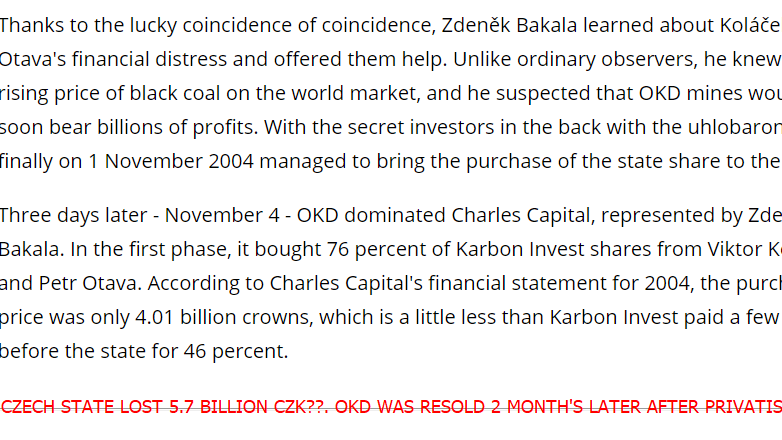 Viktor Koláček and Petr Otava sold OKD at a LOSS to Bakala it's a fact!.