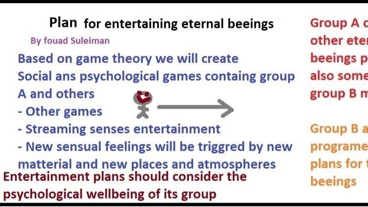 Dear cat friends and lovers , please see picture explaining a method of entertaining eternal beeings , Group A are the participant eternal beeings and Group B are the eternal designers of the futre of the participants on a job , part of group B members participate in games with group A . Antient Greeks believet that it comes in handy to entertain the Gods .