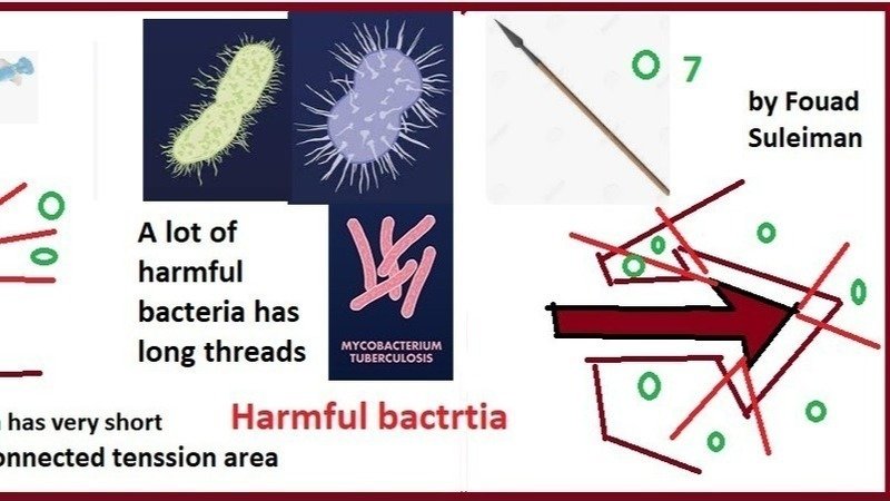 Dear cat friends and lovers , considering that all friendly bacteria has short threads and many harmful bacteria has long threads , one might assume that the long threads might function like a spear , and the short threads might function as something else as a short needle , bacteria can inject into a cell , as far connected tension areas (territories) inside the bacteria's victim body , in case of a spear it's 7 , and in case of a needle it's 5