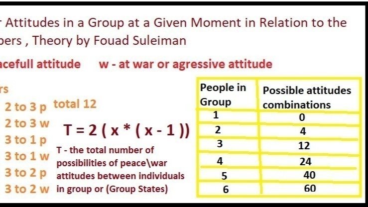 Dear cat friends and members , here is my theory , see illustration above ,I get an equasion that equates the number of possible attutudes between group members in relation to group size , see the difference between groups of 2 members and of 3 and 4 , these are the possible group war states