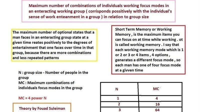 The individual's sense of work entertainment while working in a group as relation to group size onely - correction , see illustration above
