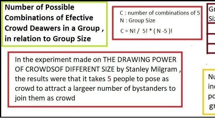 Dear cat friends and lovers , thank you for your continious support , here's the equasion of the number of possible combinations of effective crowd drawers (formers) in relation to group size , in a group of strangers