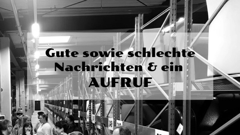 Es gibt aber auch positive Neuigkeiten bei den Verhandlungen zum Erhalt des Möbel- & Requisitenfundus: Es wurde uns signalisiert, dass die Abgabe des Fundus zu einem symbolischen Preis möglich und eine Anschubfinanzierung denkbar wäre.