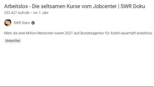 bald haben wir die 500 Unterschriften zusammen. Vor einem Jahr hat der SWR folgende Doku veröffentlicht: Arbeitslos - Die seltsamen Kurse vom Jobcenter. Man könnte mal mit den Machern der Doku Kontakt aufnehmen und anregen vielleicht mal eine Doku über das Thema dieser Petition zu machen. Das wäre ja mal eine Idee. Aber jetzt wird es wichtig, dass die Petition mehr Aufmerksamkeit von den Medien bekommt. Jeder kann da gerne mitmachen.