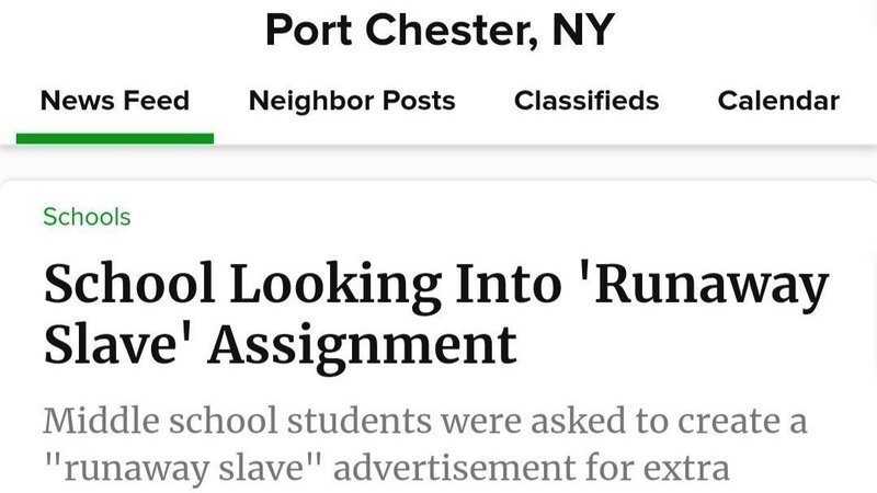 Teresa Florindi, a teacher at Port Chester Middle School under the leadership on the Principal Patrick Swift created an assignment to design a slave.