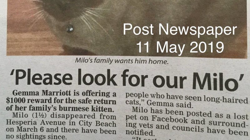 All too frequently cats go roving in WA, causing distress for both owner and animal. Here's one of two articles in this week's local newspaper - it happens all too often and can be prevented with a change in the law.