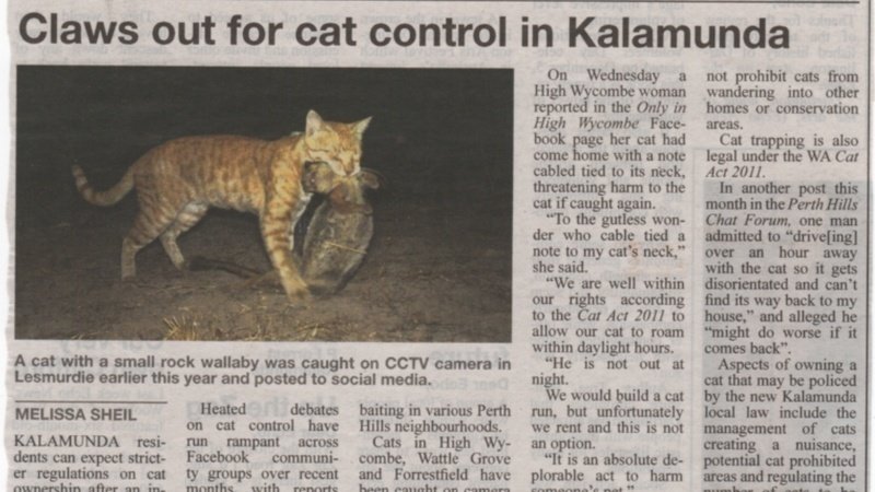 Kampanya güncellemesiSave Our Native Wildlife: Amend the Cat ActCats causing consternation in Kalamunda