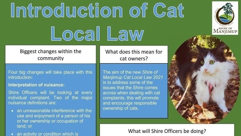 Manjimup Shire has introduced Cat Local Laws acknowledging the ongoing nuisance and danger of allowing cats to roam. New cat-free zones and powers to investigate and fine cat owners if residents complain are a step in the right direction. Let’s see these measures adopted by the rest of WA.