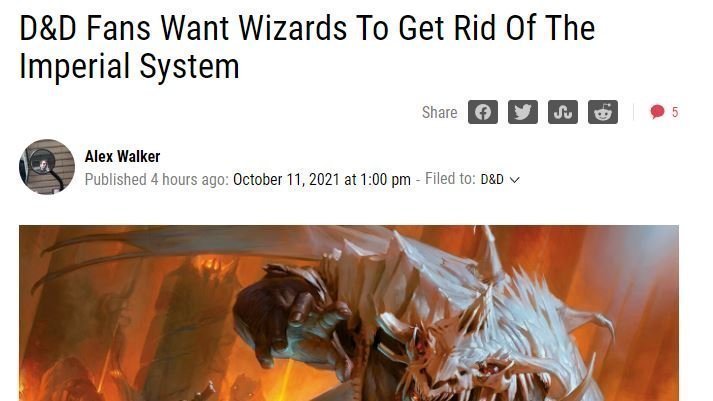 Petition updateCreate a Metric System version for Dungeons & Dragons 5.5/6th EditionArticle posted on Kotaku