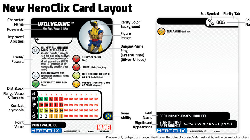 WizKids has announced that in future sets the entire dial information will be printed on a character card. Character cards are to be given to opponents upon request to read and validate powers and abilities. This new addition would allow an opponent to view an entire dial upon request of a card, allowing them to see the exact results of their strategy before they perform it. This cripples a fundamental strategic advantage of MANY pieces and hampers competitive players a great deal.