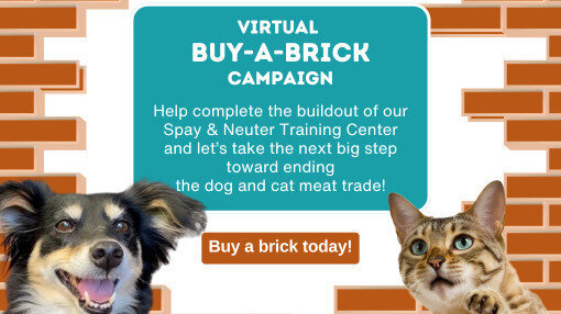 When you buy a virtual brick for $25, your gift will be doubled while funds last! With your support, our center will reduce the number of strays who fall victim to the dog and cat meat trade.