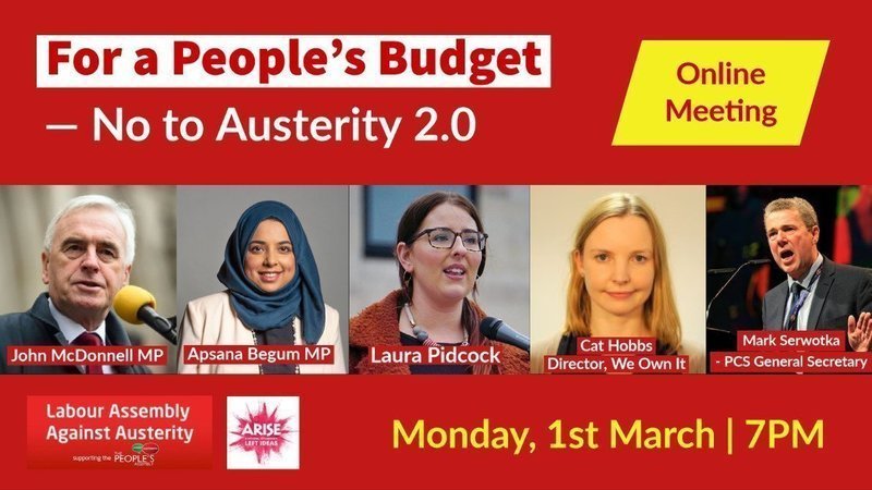 Organised by the Labour Assembly Against Austerity who have launched this #WorkersCantWait Petition. Streamed & supported by our partners at Arise - A Festival of Labour's Left Ideas.