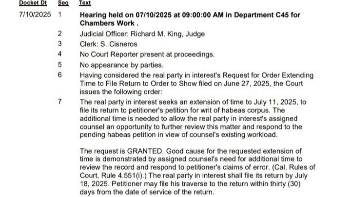 Despite the DA only asking until July 11, the court gifted them an unsolicited extension to July 18. This isn’t neutrality—it’s complicity.