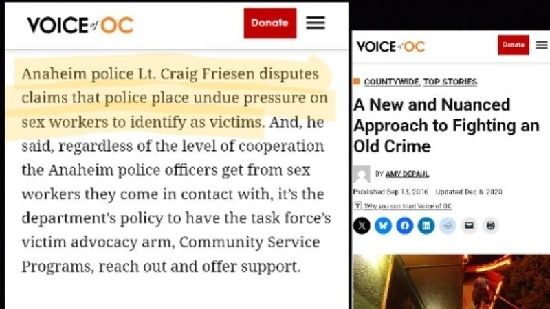 As highlighted in this @VoiceofOC investigation (🔗: https://voiceofoc.org/2016/09/a-new-and-nuanced-approach-to-fighting-an-old-crime/ ), researchers and sex workers repeatedly warned about police "putting undue pressure on informants." Anaheim PD’s Sgt. Craig Friesen denied these patterns exist.