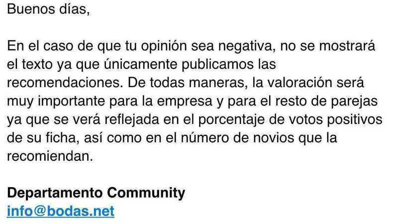 Portal Bodas.net, permitid comentarios negativos a proveedores!