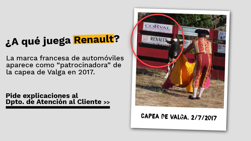 La capea realizada en Valga y subvencionada por el gobierno municipal el pasado verano incluía diferentes "patrocinadores". Nuestra sorpresa ha sido encontrar una marca reconocida entre ellos, nada menos que la compañía automovilística Renault.