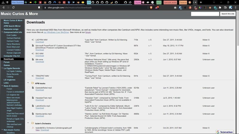 - https://sites.google.com/site/musiccurios/downloads Has Windows Classic MIDIs & stuffs. Unfortunately the OneDrive link is long ago down. But still, it's up to this day, thancc Google! I guess..