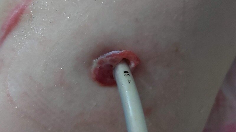 Bakın burada butonlu gastrostomi tüpünü görebilirsiniz. Benim gibi birçok çocuğu kocaman hortumlardan kurtarıyor. Lütfen destek olun.