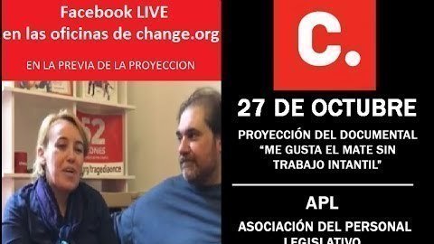 Actualización de la peticiónYerba mate sin trabajo infantilHicimos un Facebook live en las oficinas de change.org #VolvemosAlCongreso @JorgeTriaca