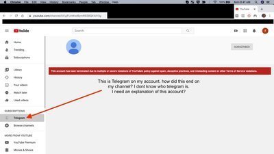 What would I gain to ruin my reputation as a physician in the medical community to have spam or illegal information on my youtube channel. This is a work of a hacker who stole my youtube channel, change it to Telegram and caused my youtube account suspended.
