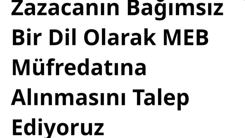 Petition updateZazacanın Bağımsız Bir Dil Olarak MEB Müfredatına Alınmasını Talep Ediyoruzİmza kampanyamızı arkadaşlarınla paylaş