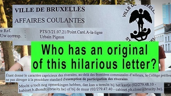 Petition updatePour un 'jardin de quartier' sur la berme centrale / Voor een 'buurttuin' op de middenbermThis hilarious letters of Urbain Pigeon (Affaires Coulantes de 'bxl')