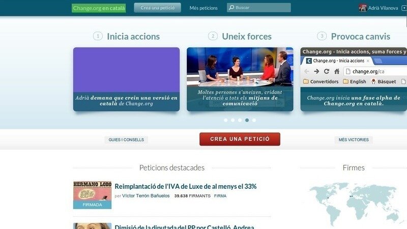 Change.org es una fantástica iniciativa donde todo el mundo puede difundir peticiones, que pueden estar escritas en inglés o castellano. Pero en Cataluña también queremos tener el derecho a enviar nuestras peticiones en catalán. Firma esta carta si quieres que se haga una versión en catalán de la web change.org.