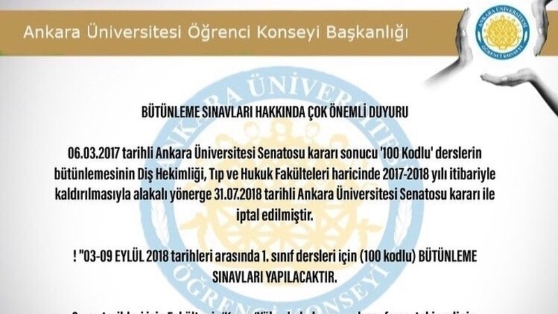 Ankara Üniversitesi bütünleme sınavlarını geri istiyor