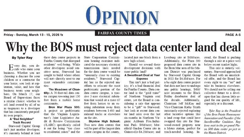 Tie Fairfax County land sale to data center developer to affordable housing near metro
