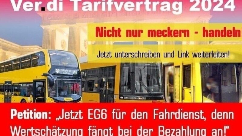 Tarifergebnis 2024 nachbessern - Für mehr Wertschätzung des Fahrdienstes der BVG