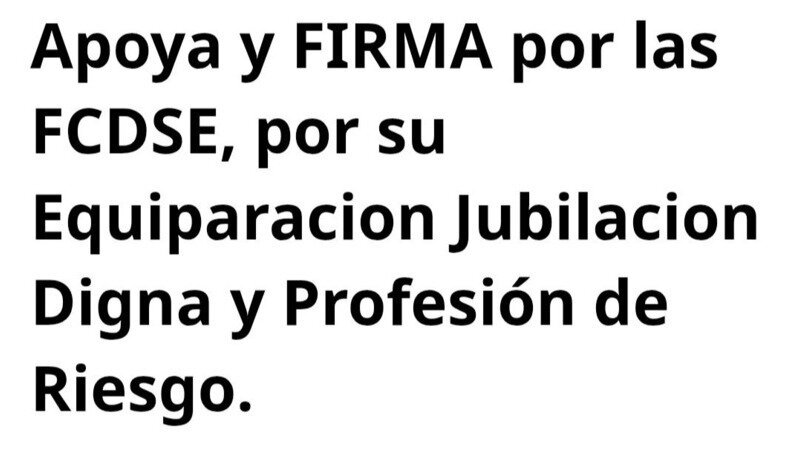 Apoya y FIRMA por las FCDSE, por su Equiparacion Jubilacion Digna y Profesión de Riesgo.