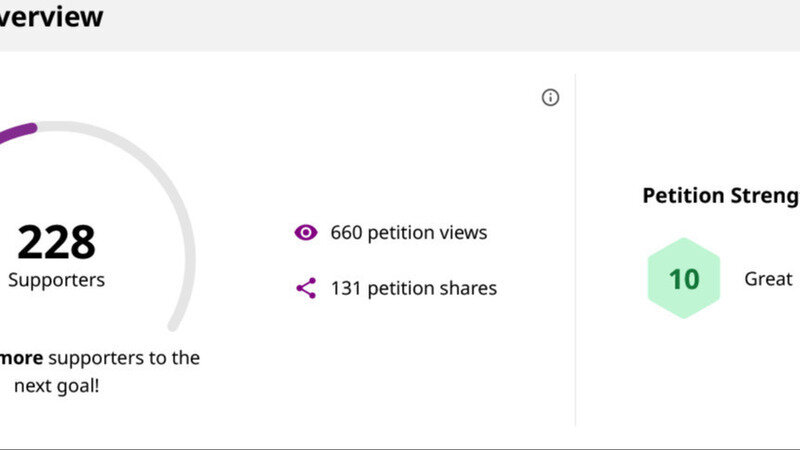 Good start for our campaign!  Good start for our campaign!   We have received total of 228 signs till now just within 12 hours! Thank you all for your support a…Read full update