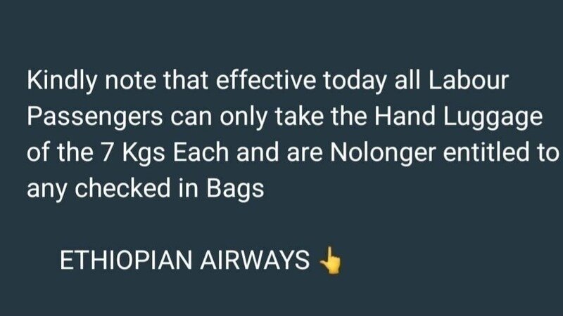 STOP UNFAIR BAGGAGE RESTRICTIONS FOR LABOUR MIGRANTS ON ETHIOPIAN AIRLINES