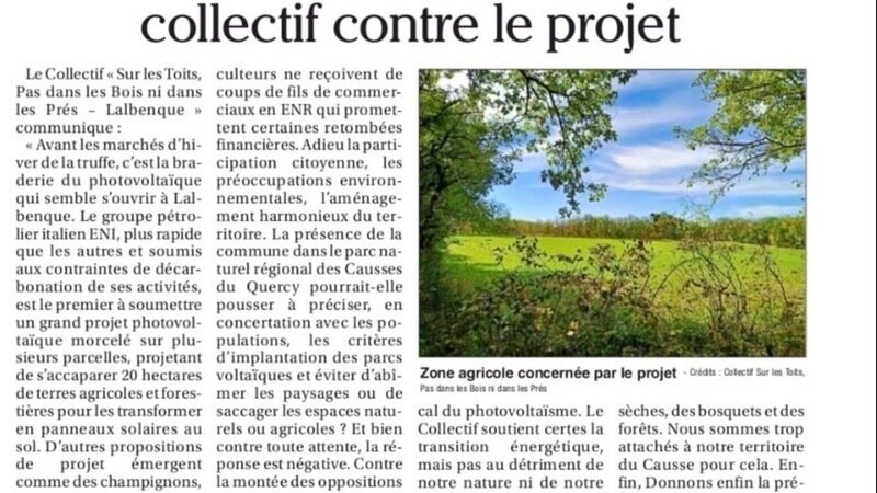 Non au parc photovoltaïque à Lalbenque-Cieurac