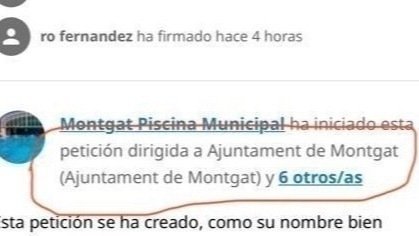 Explore 1 petition in Piscina Municipal Cubierta Para Montgat