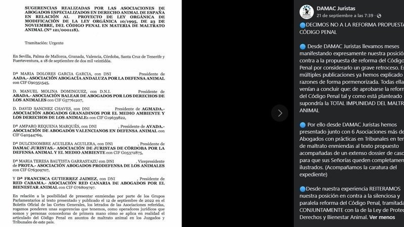JURISTAS Y ENTIDADES DE PROTECCIÓN ANIMAL RECHAZAN EL TEXTO QUE REFORMA EL CÓDIGO PENAL