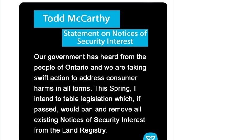 OPEN LETTER TO ON-GOV - Ban on NOSIs/Liens - Demand for Legislative Action by the REALTORS